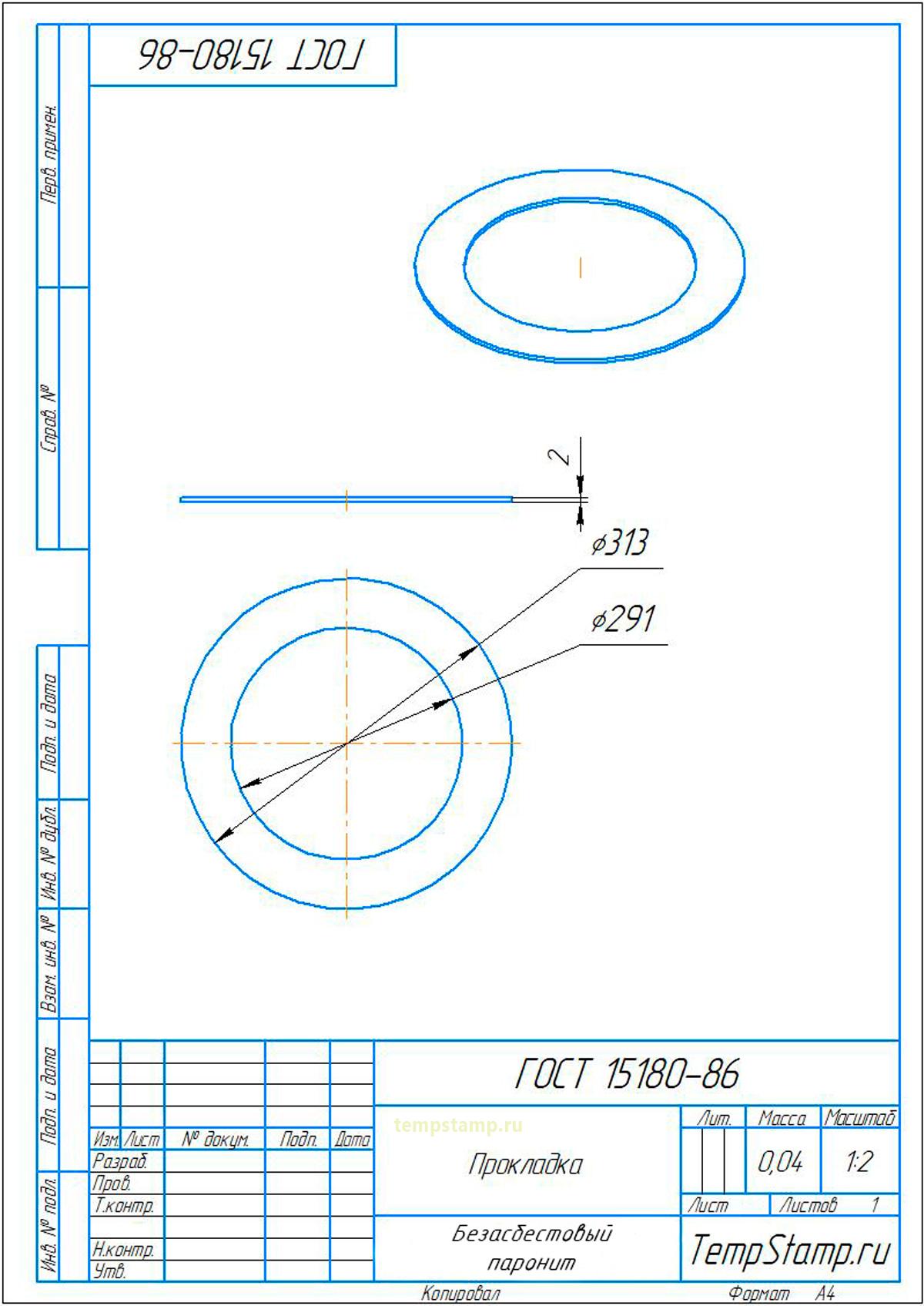 Материал: безасбестовый паронит 2 мм